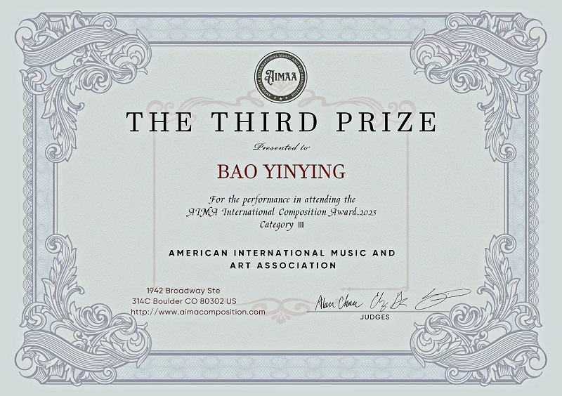 美国国际音乐艺术协会设立了“AIMAA国际作曲比赛”,以激励全世界的年轻一代为创作新的音乐作品做出贡献。美国AIMAA国际作曲比赛均为来自全球不同国家和地区的参赛者敞开大门,参赛者根据年龄进行分组共分为六个组别。参赛者需要选择以下音乐体裁的一个类别:合唱、声乐独唱、流行音乐、电子音乐、管弦乐、室内乐、器乐独奏作品、打击乐。
