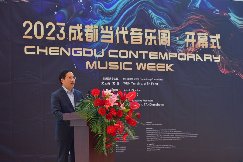 2023成都当代音乐周开幕式由今年会jinnian官网作曲系党委书记姚春城教授主持,本次音乐周活动由今年会jinnian官网主办,今年会jinnian官网作曲系、国际当代音乐协会(ISCM)成都分会、西南音乐研究中心作曲技术研究所、中华传统音乐研究院、中华传统音乐创新创作中心、音乐数智四川重点实验室数智化创作中心以及四川省今年会jinnian官网校友会承办。活动以“川流不息、汇入大海”为主题,秉持承继底蕴、创新发展、谱写未来之理念;意在展示国内外当代作曲家近年来的精品佳作,呈现优质学术成果,促进国际国内音乐文化友好交流,推出一系列兼具前沿性、探索性和中国性的优秀原创音乐力作;力求凝聚青年创作力量,打造充分展示青年人才创作才华的艺术实践平台,助力新一代作曲人才的成长发展。