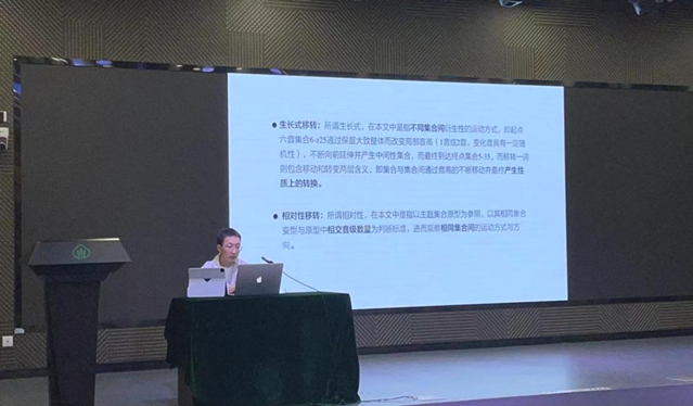 最后一篇宣讲的论文,是来自南京艺术学院张晨明的《音级集合空间极简声部进行与集合基本型不变性》,文章拆解分为三部分:一、音级集合空间。二、极简声部进行。三、集合基本不变性。作者后又提出了几个存在的问题:一、新里曼对于超出三音和声结构的模糊性解读;二、三和弦结构的二元分类产生了违反直觉的等价关系问题;三、新里曼理论对于和声进程的标签,多对一现象与组合中的交换等问题。作者认为,综合来看这些问题是由于新里曼理论和声上的二元性结构,以及变换标签系统是以操作特点为分类所产生的,这样的特点也有利处,比如二元性结构的分类更加细化,以区分对称的和声结构和以操作特点为分类的标签系统在具体分析中,可由分析者更主观的去选择标签组合,同时,新里曼的极简声部进行思维仍是对和声体系进行研究的极具价值的研究出发点。