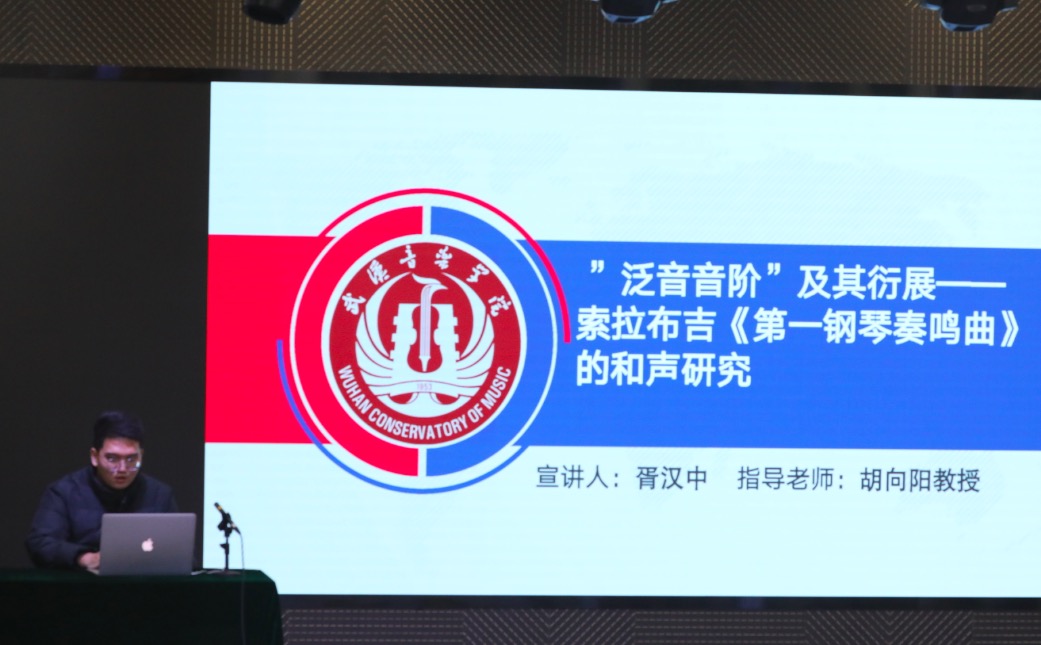 第一位是来自武汉音乐学院,胥汉中的论文《“泛音音阶”及其衍展——索拉布吉<第一钢琴奏鸣曲>的和声研究》,围绕着“泛音音阶”的技术手法和音级间的可动性进行展开,以及对于和弦结构与声部的多元化等特征作为研究索拉布吉《第一钢琴奏鸣曲》和声研究的切入点。对索拉布吉以“泛音音阶”为核心音高组织,从纵向上向更高的谐音区域进行扩展与延伸。同时,也从横向上将相似的利底亚、全音阶、旋律调式等关联起来。由此产生了丰富的和声技法。如论文中提到的“倒置、倒搬、剪辑”等等,产生的丰富和声色彩。并且其作品中独特的泛音音阶与之相通的其他调式音阶的控制下,产生的多种结构和弦所呈现出来的音响效果,很好的突出了索拉布吉的个人音乐风格。