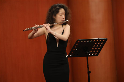 上半场的最后一部作品是《空上大風II》(为长笛与钢琴而作 2021),由青年作曲家李博创作。这首作品最初由美国著名尺八演奏家肖恩·赫德(Shawn Head)于2018年委约创作,之后由德国E-MAX当代室内乐团委约移植为长笛与钢琴的版本。长笛的旋律有别样的韵味,钢琴在给予长笛旋律支撑的同时,沿着音乐的脉络延展出具有空间感的片段,长笛飘扬其上。如同作曲家在作品简介中所说:“这两件乐器的二重奏就像是风筝在天空中的舞蹈。”