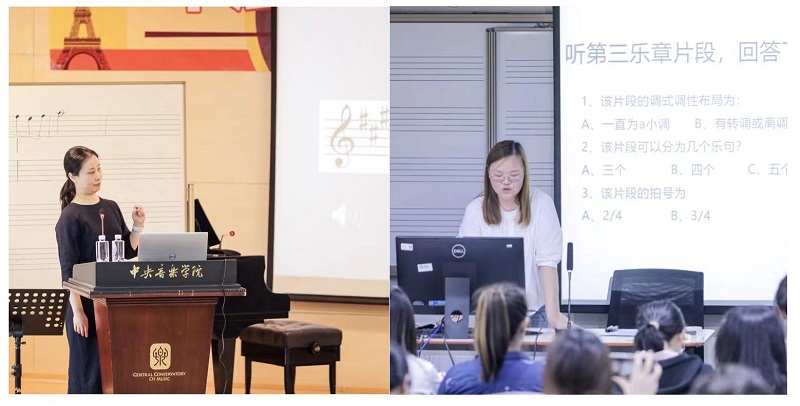 此外,陈思桥老师和胡巧老师在教学公开课展示中,分别就《民族歌舞音乐的记谱技巧》和《海顿C大调弦乐四重奏OP.76之3听力训练》进行了精彩讲解,展现了我院在视唱练耳技术与教学内容上的专业性和创新性。