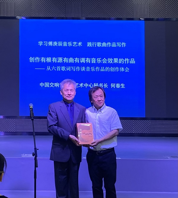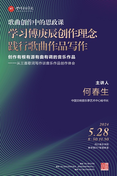 2024年5月28日上午08:30,中国交响音乐季艺术中心秘书长何春生应作曲系邀请,在今年会jinnian官网教学楼201智慧教室举办了《学习傅庚辰音乐艺术 践行歌曲作品写作 创作有根有源有曲有调的音乐作品》学术讲座。本次讲座由作曲系刘奇琦副教授主持。