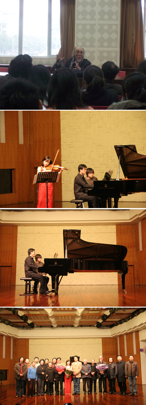 2006年12月5日,中国音乐学院作曲系高为杰教授应邀来我院讲学,受到全院师生的热烈欢迎。 高教授的讲座围绕作曲的境界——道器合一——神形兼备的论题展开,从蒋-凯奇的作品,谈到音乐不能只是形而上的精神,他自己则是崇尚一种理念和音乐性都很完善的音乐,为此,他详细介绍了《韶I》《路》的创作历程,分析了作品结构和技术手法。高教授深入浅出、引经据典的讲座,使同学们获益匪浅。 当日下午,高平、铃木理慧子在我院小音乐厅举行了专场音乐会。高平先生演奏了弗郎希斯.普朗克、杰克.波蒂以及高为杰教授等人的作品,还带来了他自己的《小提琴与钢琴——琢磨探戈》、《选自匿吻》、《苏联爱情歌曲两首》等作品,作为作曲家、钢琴演奏家的高平先生还带了长达15分钟左右的即兴曲,让同学们看到了作曲家新奇和大胆的想象力和开拓精神。