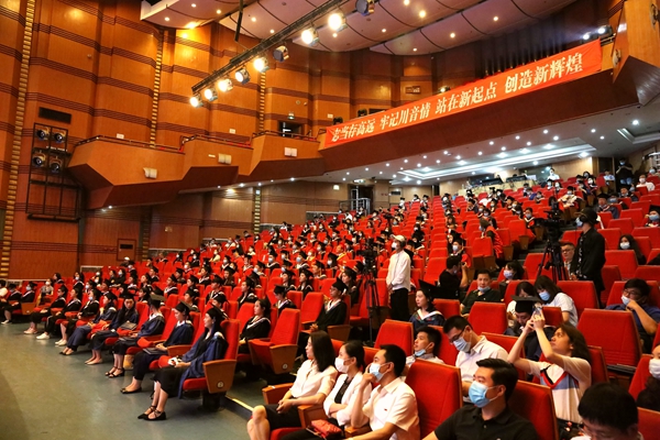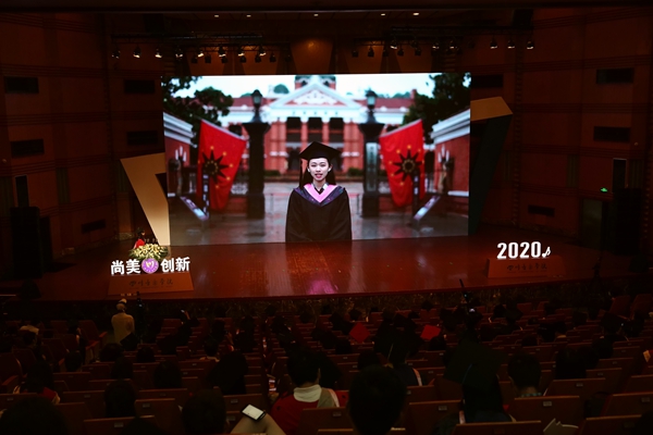 6月22日,学校在锦江校区大音乐厅举行2020年毕业典礼暨学位授予仪式。今年的毕业典礼因为疫情的原因显得特殊而珍贵,除了来到现场的120名毕业本科生和毕业研究生代表外,学校3962名毕业生相聚云端,通过“云直播”的方式参会,在学校党委领导班子全体成员,相关职能部门负责人,系(院)党政负责人,导师代表,教师及辅导员代表的共同见证下,为自己的川音生活画上圆满句号,开启人生新的征程。