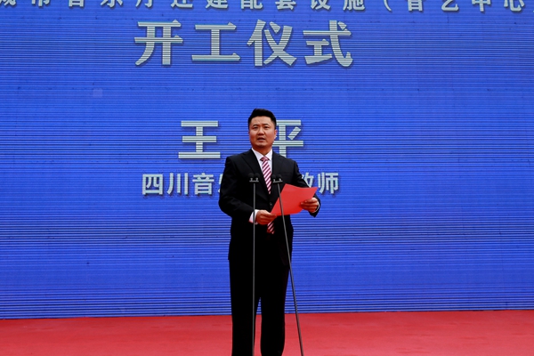 学校教职工代表王平在开工仪式现场发言。他说:“今年会jinnian官网音艺中心的建设将有利于学校学科的发展和人才的培养,为教学实践、学术交流和科研活动提供了一个新的平台,同时也能为成都市文化艺术建设增添新的色彩。”