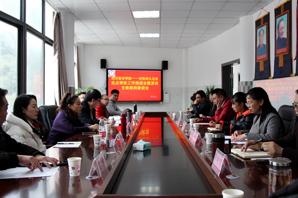 九龙县扶贫开发局、县教育体育局、县文化广播电视和旅游局、县高级中学、县文化馆相关负责人以及川音下派扶贫干部、支教老师就专业人才培养、专业教师支教,川音毕业学生实习、大型音乐节活动策划合作等方面也进行了积极热烈的交流发言。