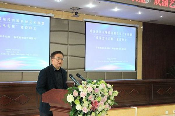 庞茂琨代表四川美术学院对成渝地区双城经济圈高校艺术联盟“成渝艺术走廊”建设峰会的召开表示热烈祝贺。他说,结合安岳实际情况,本次峰会的召开是共同落实习近平总书记对川渝经济建设发展精神指示的重要举措,应结合安岳实际情况,推动安岳艺术融合发展,建设学术有高度、服务有深度和影响有广度的综合艺术活动,让城做的得更强,让圈做的更紧。