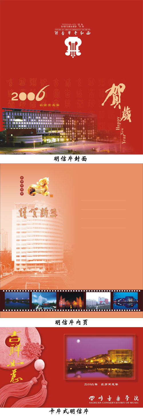 新年将至,学院特设计和制作了两套精美明信片,一套为折叠式样,需信封包装并另附邮资,另一套参照邮政明信片,自带邮资可直接邮出。欢迎各部门根据样品提出订购数量,并请于本周三前向学院院办书面报送订购量(注明订购式样并加盖部门印章),两套明信片订购价均为1.60元。此明信片还在修改中。