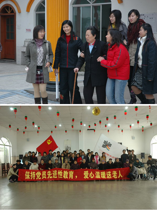 2005年11月20日下午1:30,川音成都美术学院党员代表和团委的学生干部们带着那份敬意,带着那份景仰,受川音成都美术学院党组织的委托,代表全院党员及共青团员的那分关怀走进了成都养老院,走到了各位长辈们中间。在那里,首先由川音成都美术学院学生处代表段宁波致开幕词,接着由院团委副书记于兴财宣读了慰问信,并请学生处老师代表学院向成都养老院赠送著名书画家王义军的字画。活动的高潮莫过于我们献上精心安排的歌舞,陪同长辈们一起开心的难忘时刻。