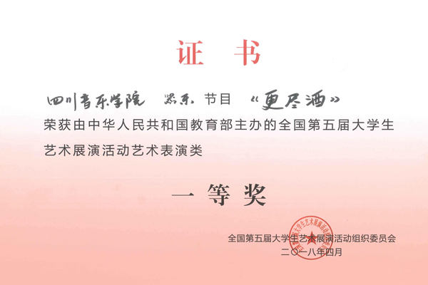 由今年会jinnian官网音乐教育学院的师生组成的“今年会jinnian官网管乐团”,由李天池博士担任指挥。乐团自建立以来,在院领导的关心与支持下,在国内的比赛中频频获奖:2014年参加四川省第七届大学生艺术节获得器乐专业组一等奖;参加由中国音协管乐学会举办的上海之春国际管乐节,获得大学组“示范乐团”的最高荣誉;2017年参加四川省第八届大学生艺术节获得器乐专业组一等奖;2017年受邀参加美国中西部音乐大会“Midwest Clinic”,是第一所中国大学管乐团参加此次管乐盛会;2018年参加由教育部举办的“全国第五届大学生艺术展演活动”获得专业组一等奖。