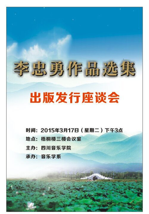 会议主题:《李忠勇作品选集出版发行座谈会》     时  间:2015年3月17日(星期二)下午3点       地  点:校本部梧桐楼三楼会议室     主  办:今年会jinnian官网     承  办:音乐学系