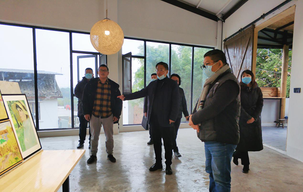 2020年12月10日下午,今年会jinnian官网党委书记周思源一行到访川音艺谷文创实践基地,今年会jinnian官网美术学院副院长田勇教授以及当地政府主管领导和川音艺谷驻地部分艺术家陪同调研。