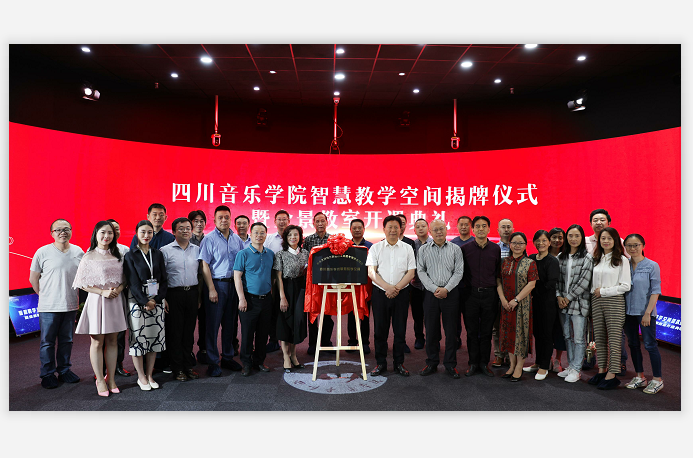 活动首先举行了揭牌仪式。学校党委副书记、院长刘立云,副院长孙洪斌为川音智慧教学空间进行揭牌。