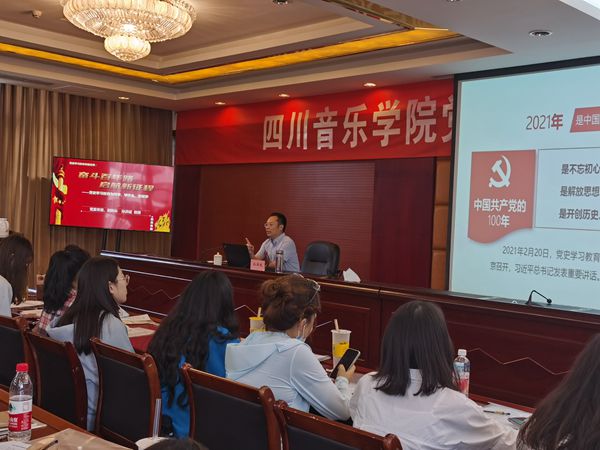 侯钫同志以《为人民服务,永远不变的初心使命》为题,就“为人民服务的宗旨,为人民服务在新时代的理论创新,为人民服务在文艺界的实践”三个方面展开讲述,落脚到今年会师生作为文艺工作者,应该为人民服务、为人民创作;魏文彪同志以《规矩、责任和奋进的姿态》为题,以自身经历与体会为切入点,结合中华传统文化、革命历史实践及艺术家的生动案例,引导青年坚守规矩,勇担责任,以奋进的姿态做人、做事;文云英同志以《学习党史、增强党性,做新时代合格党员》为题,从党史大事讲到身边小事,引导学员从党的发展历程中吸取力量,从优秀校友的榜样中吸取经验,从身边反例中吸取教训,做新时代合格党员;孙洪斌同志作《奋斗百年路,启航新征程》专题授课,讲述为什么学党史、学什么、怎么学,告诫学员要以“赶考”心态去学习、生活、工作,扎根人民群众中去实践;包德述同志与姚春城同志分别作《抗日救亡时期的经典爱国歌曲》、《音乐党课》专题授课,结合音乐专业特色,选取了多首党史上的经典歌曲,以歌曲丰富党史,以党史诠释歌曲,通过听与唱,学习歌曲背后的党史年代,感受曲中人的爱党爱国情感;何永铨同志为学员讲解《党员发展程序》,引导学员为程序上入党做好思想上的准备。
