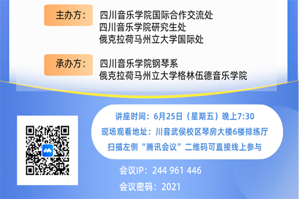 在线讲座集中观看地址:川音武侯校区琴房大楼六楼排练厅