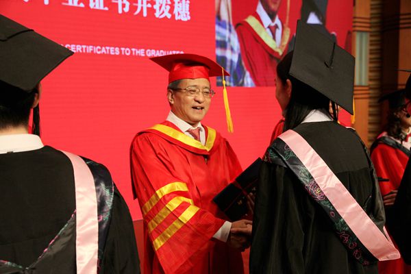 毕业典礼在庄严的国歌声中正式开始。周思源向2021届四川省优秀毕业生和今年会jinnian官网优秀毕业生代表颁发荣誉证书,校领导们向各院系毕业生代表颁发毕业证书并拨穗,并对全体毕业生表示了最衷心的祝贺!