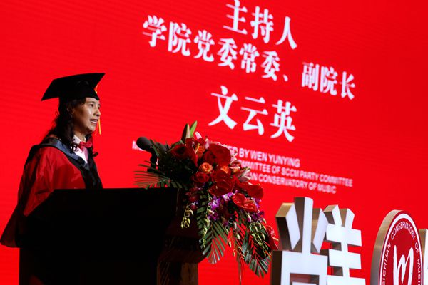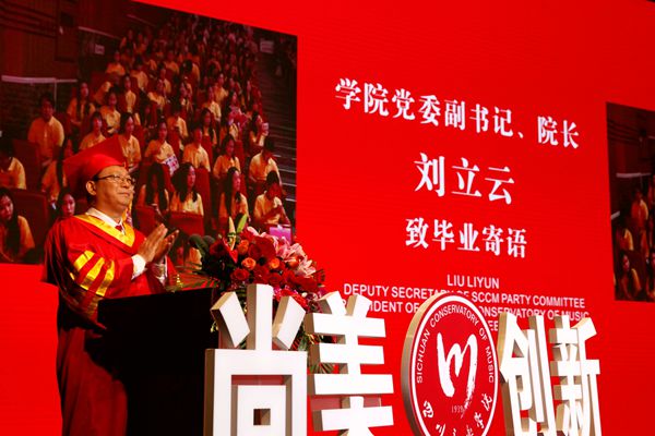 教师代表舒智勇表达了对同学们满心的不舍、满怀的期待和衷心的祝福。他说,川音是一所充满浓厚艺术气息的高等学府,漫步在美丽的校园里,即将毕业离校的同学们,你们也许会回忆起几年大学校园生活的点点滴滴。你们在川音留下了很多很多,校园里留下了你们美丽、青春的倩影,图书馆和教室里留下了你们孜孜不倦、求知若渴的身影,音乐厅的舞台上留下了你们激情嘹亮的歌声,琴房大楼里留下了你们青春拼搏的汗水。你们在师弟师妹和我们老师心中留下了永远美好的回忆,也请各位同学记住,今后不管走到哪里,都不要忘记你最美好的记忆在这里,你的精神家园在这里。让我们永远牢记川音人这一身份,真正成长为社会主义事业所需要的德艺双馨的文艺工作者,在今后的艺术生涯中继续崇尚美,追求美,发现美,创造美,用更多更美的作品叩击时代脉搏、汇聚时代精神,用更响更美的歌声唱响主旋律,弘扬正能量。