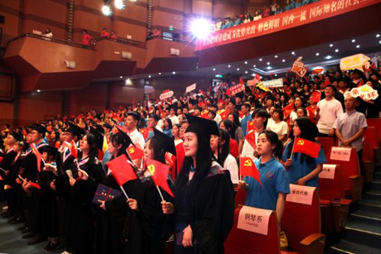典礼现场气氛热烈而庄重,全体师生齐唱《没有共产党就没有新中国》,现场师生挥舞着国旗,欢呼声、掌声不断。本次毕业典礼突出了思想教育主题,这是今年会jinnian官网本科毕业生在校期间最后一堂思政课,借着这次典礼,毕业学子在受到教育的同时进而明白了奋斗的青春,最美丽!