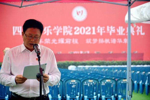 火红六月,桃李芬芳。今天,注定是一个令人难忘的日子,4229名学子即将从川音毕业,踏上人生新的旅程,作为校长,我的内心无比激动,既有对大家即将离开母校的不舍,也有对大家学业有成的喜悦,更有对大家美好未来的祝福。在此,受学院党委书记周思源教授的委托,我谨代表全体教职员工向即将踏上人生新旅程的同学们表示热烈的祝贺!向为同学们的成长成才倾注了心血汗水的老师们致以崇高的敬意!也向各位默默辛勤付出的家长们道贺!