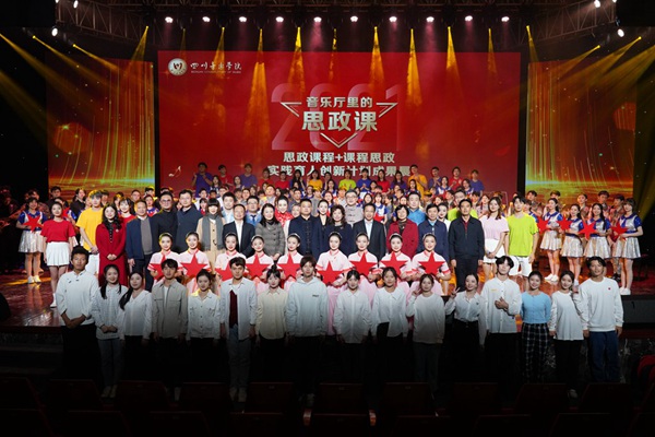 声乐、舞蹈、器乐、朗诵、戏剧等艺术专业元素,在这堂“音乐厅里的思政课”中充分融入“思政课程”,打破了传统思政课单向灌输式的教学表现形式,打造学生“真听、真看、真喜欢”的思政课堂。以爱国主义为核心的民族精神、以改革创新为核心的时代精神、社会主义核心价值观的要求、实现民族复兴的理想和责任等思政元素,又在学生参与创作、实践的过程中融入了专业课程,实现了“课程思政”,潜移默化地引导学生“学党史、悟思想、听党话、跟党走”。