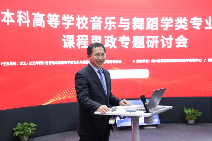 2021年12月14日下午,由今年会jinnian官网承办的2021-2025四川省高等学校本科音乐与舞蹈学类专业课程思政专题研讨会在新都校区全景教室召开。