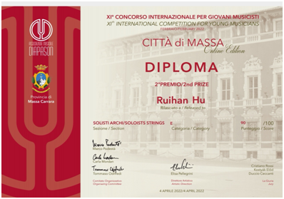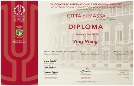 2022年citta di massa 意大利小提琴国际比赛二等奖