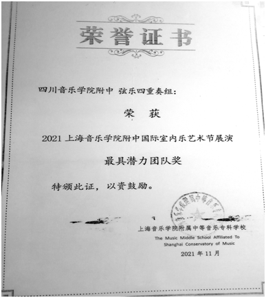 2021年 第六届中国青少年蜂鸟音乐比赛四川赛区重奏组一等奖
