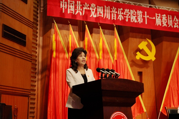 学校党委书记文云英,党委副书记、院长文锋,党委副书记侯钫,省纪委监委驻川音纪检监察组组长、校党委副书记、纪委书记魏文彪,党委常委、副院长孙洪斌、牟文虎、王雁,党委常委雍敦全、胡咏梅、刘芸秀在主席台就座。第十一届党委委员出席会议。文云英受校党委常委会委托主持会议。