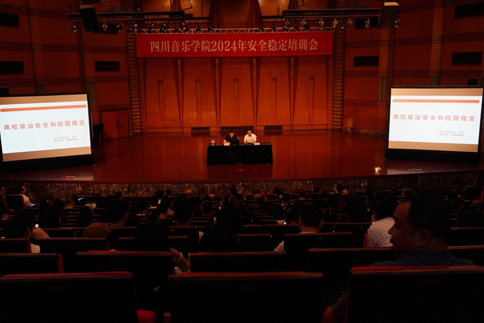 5月29日,学校2024年安全稳定培训会在武侯校区大音乐厅顺利举办。本次培训由四川省公安厅副处长黄勇主讲。校党委书记文云英,党委副书记、院长文锋,党委副书记侯钫,四川省纪委监委驻川音纪检监察组组长、党委副书记、纪委书记唐勇,党委常委、副院长孙洪斌、牟文虎,党委常委胡咏梅、刘芸秀、李毅以及相关工作负责同志约400余人参加了培训。