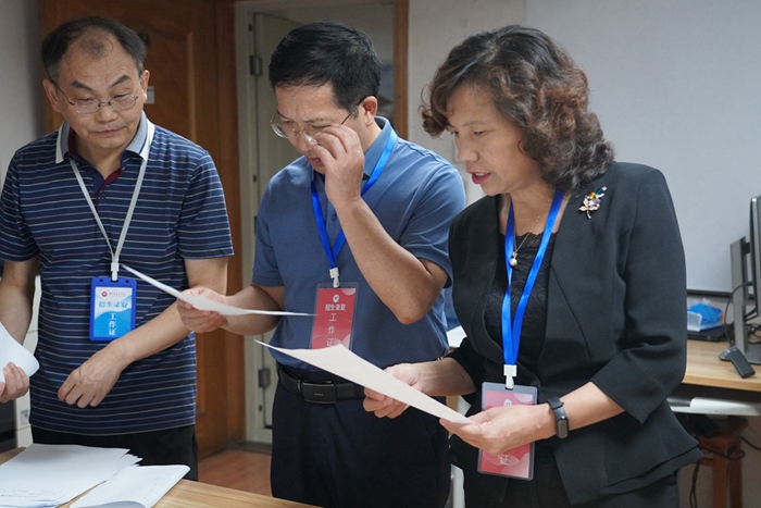 校领导详细了解各省的生源情况、数据保护、录取审核流程,与生源省的信息交互、网络保障等各环节的工作运转情况,特别对已录结省份考生的成绩状态进行深入了解。